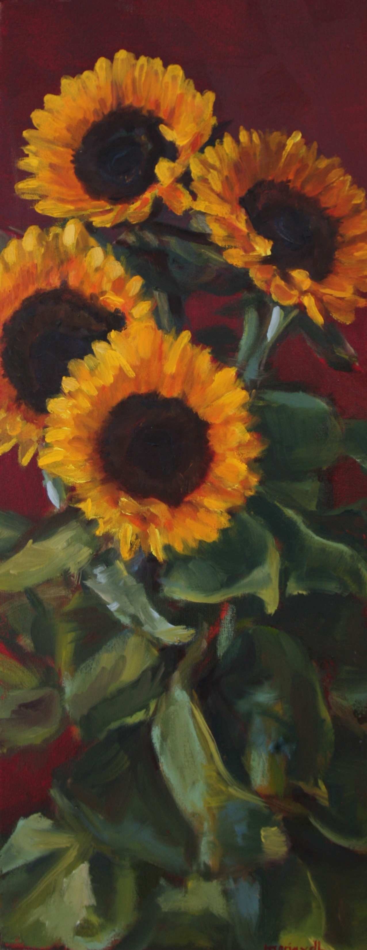 Helianthus met rode achtergrond