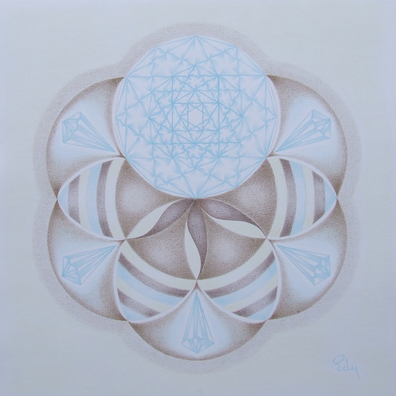 Edy combineert haar liefde voor kleuren en papier door blanco tekenvellen te vullen met in elkaar overvloeiende kleuren en mooie vormen. Vaak is een mandala de basis.