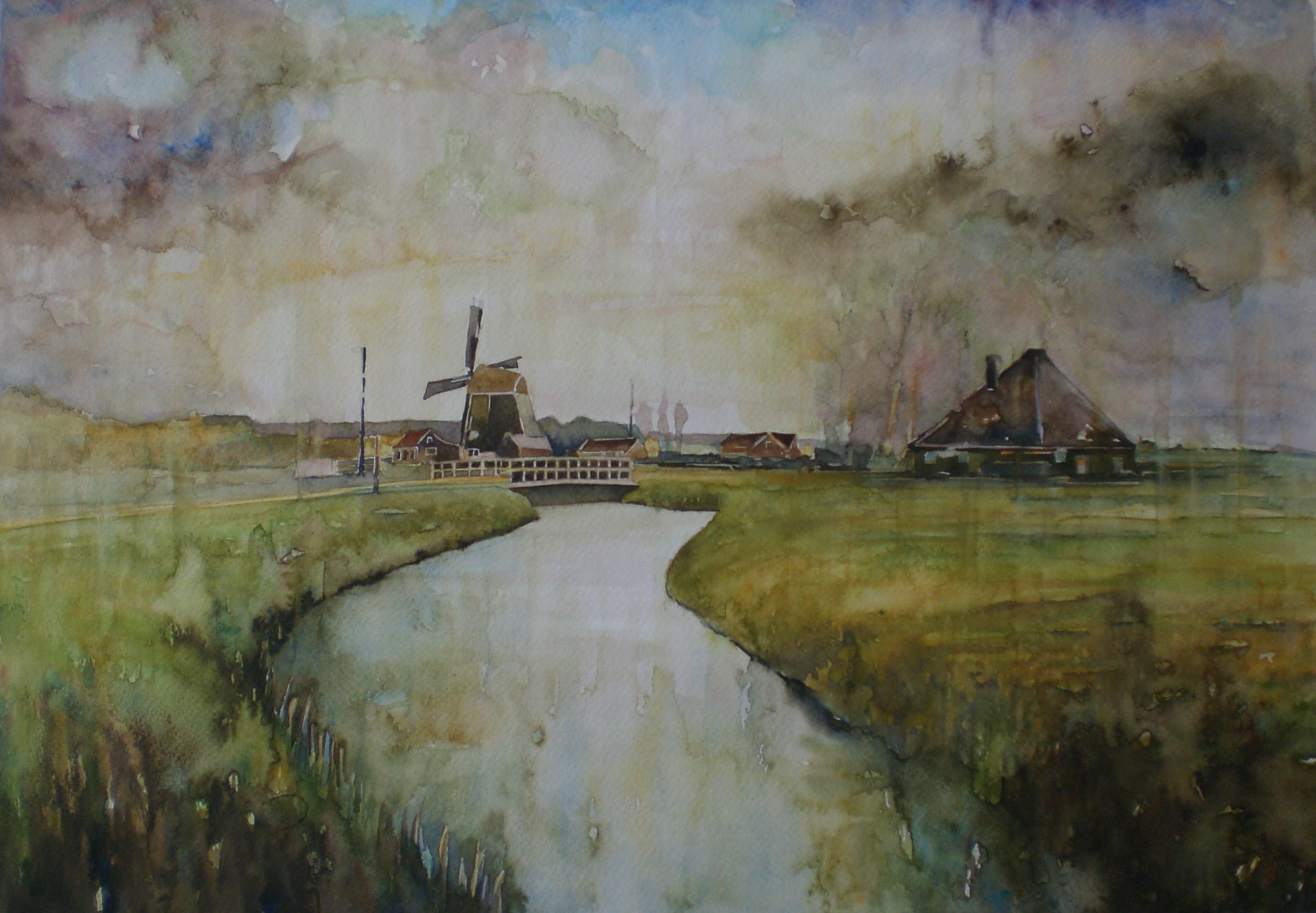 Ik aquarelleer bij voorkeur realistische onderwerpen uit de leefomgeving van de mens in stad en dorp. De eerste aanzet van m'n schilderijen komt een enkele keer op locatie tot stand.