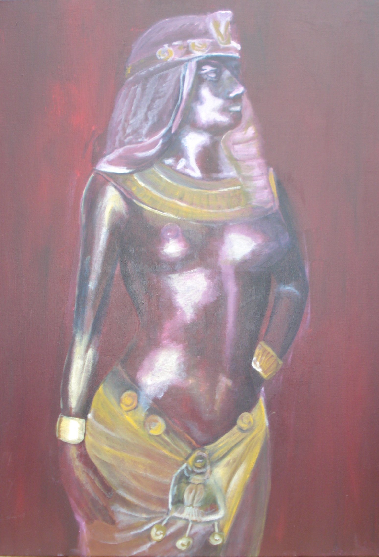 Egypyische godin in rood met oker. Zij is de beschermvrouwe van het huis waarin zij verkeert.