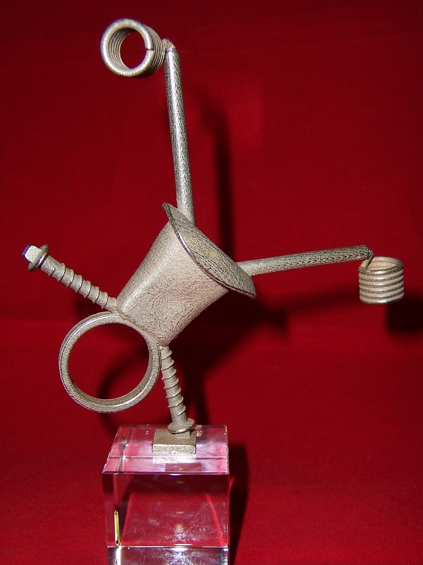 (2011) The Scrappies - Turnster Hoogte (met sokkel): 18 cm De plastieken worden als unikaten in het 3DP-proces (driedimensionaal afdrukken) van staal met brons vervardigd en op een kristalglazen sokkel (80x50x50 mm) gemonteerd. [...meer...]