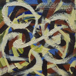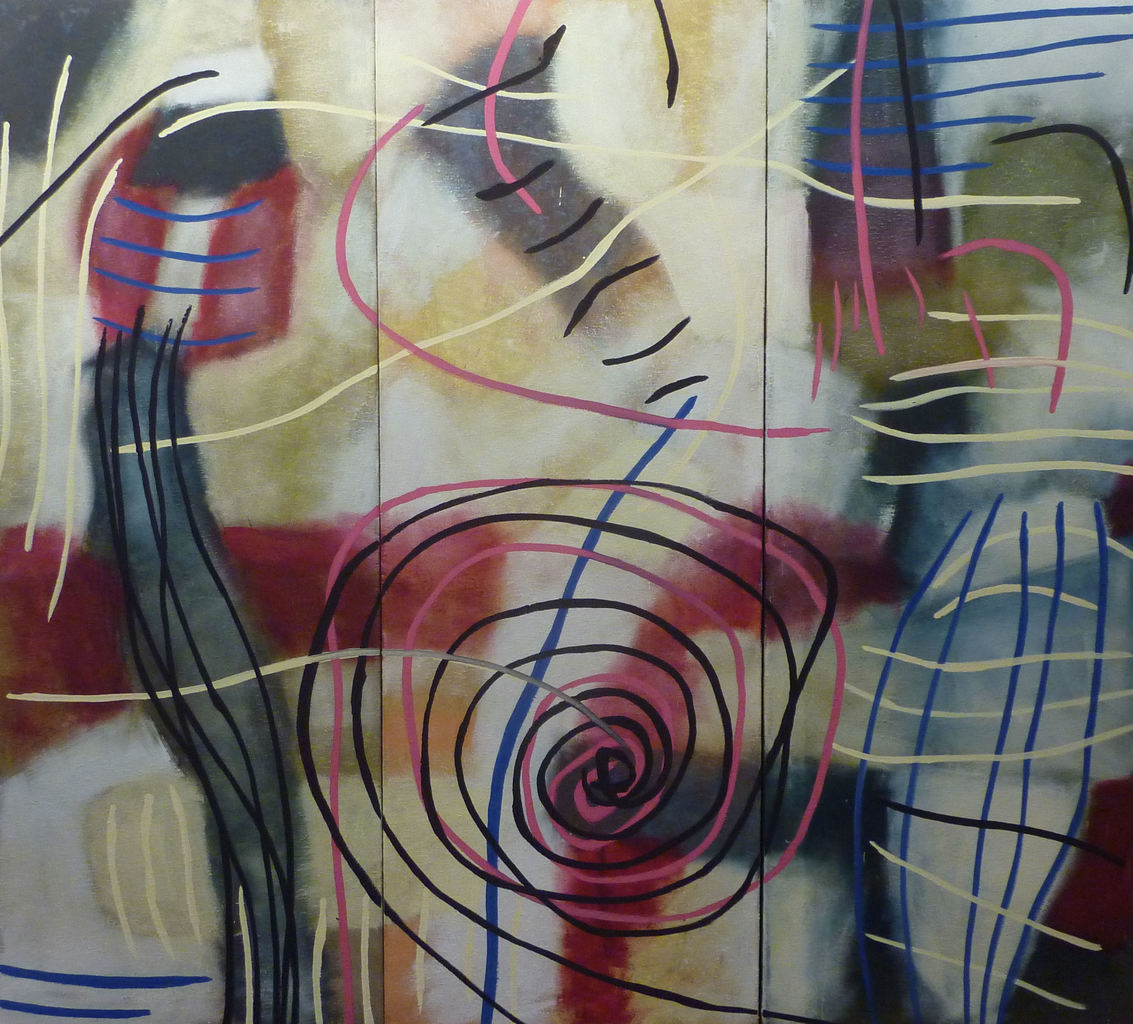 Groot, monumentaal werk, Tempera op doek Drieluik, 3 x70= 2.10m breed bij 1.90m hoog.