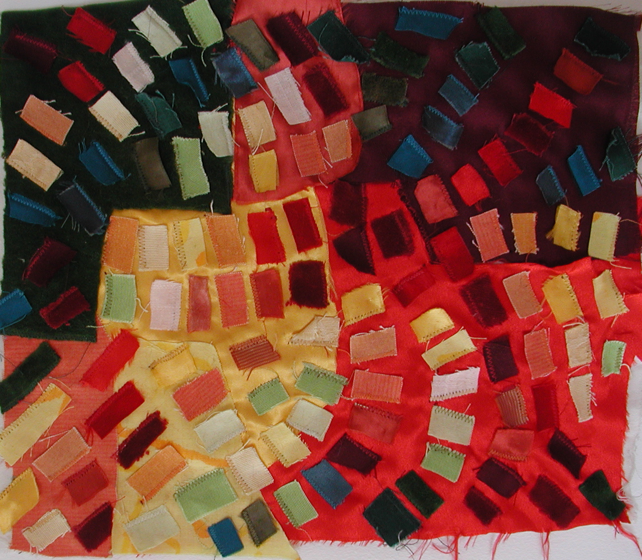 Adinka Tellegen maakt doeken die ‘geschilderd’ zijn op de naaimachine. Er komt geen pen, geen potlood en geen penseel aan te pas, alleen stukjes textiel en machinegaren. Dat is pas van dichtbij te zien.