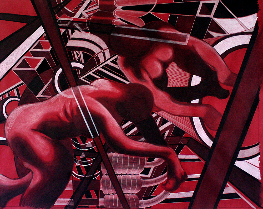 Drawing is a discipline in which ‘looking outside’ and ‘looking and moving within the frame of the paper’ is very important. Sources of inspiration are urban and industrial landscapes and shapes of the human body. Tom’s work consists of countless shades of black but he also uses colour in an exciting way. The artworks change as the daylight changes. Observations and impressions from spending time outdoors inspire his artwork. His skilled drawings may develop into new drawings as well as paintings. In his paintings he combines colour, patches and blots with lines to create several spaces.