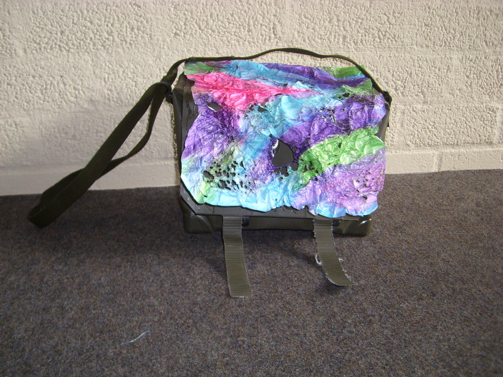 legertas versierd met zelf beschilderde Tyvek