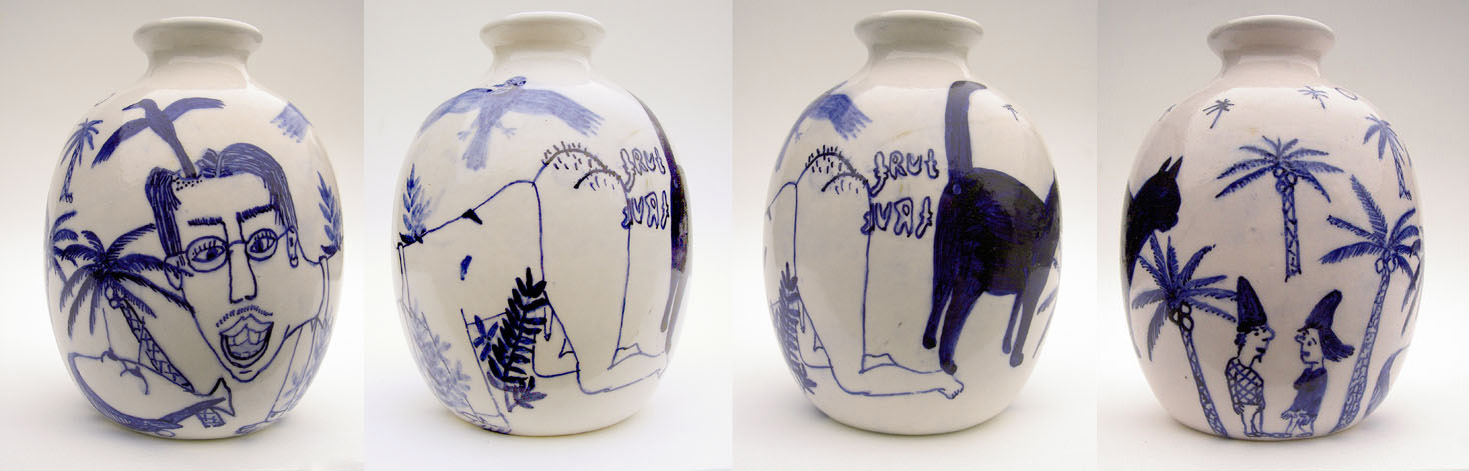 Figuratief werk op vazen, tegels en papier.