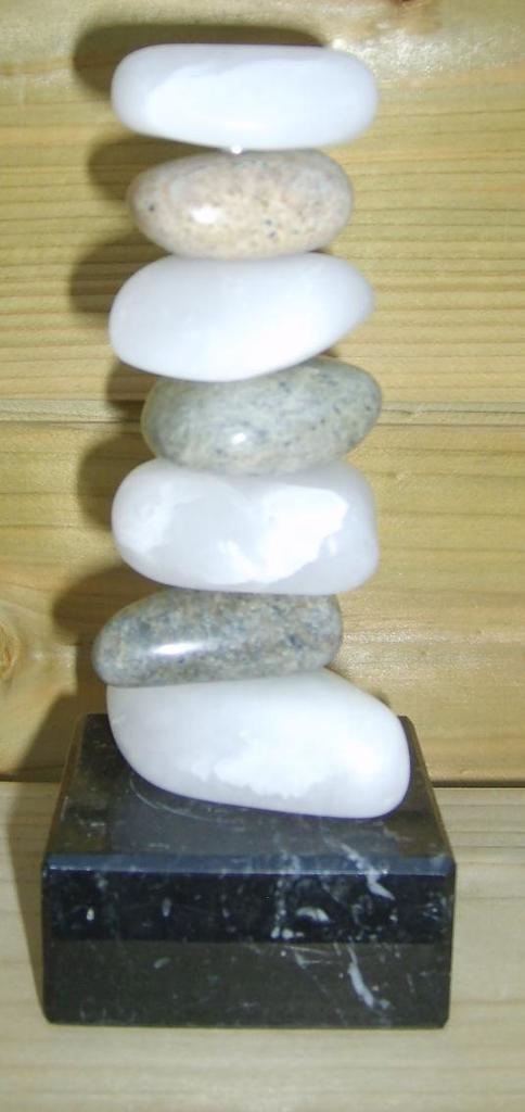 Stapel stenen van braziliaans speksteen en albast op marmeren sokkel