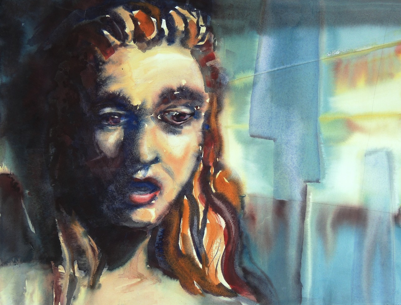 Isolde in Tristan en Isolde van Wagner; aquarel in passe-partout