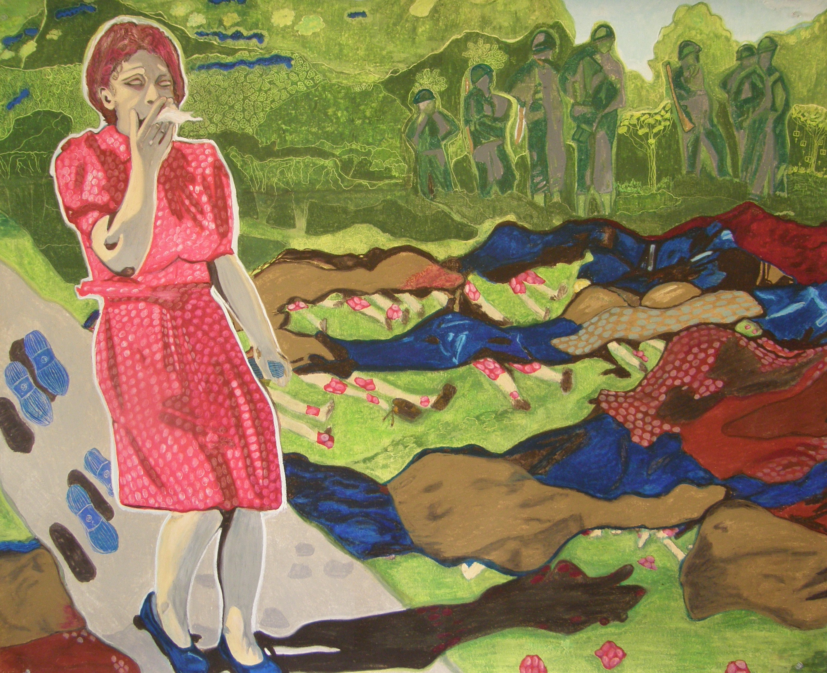 Vrouw Papier Oliekrijt Slagveld Daglicht