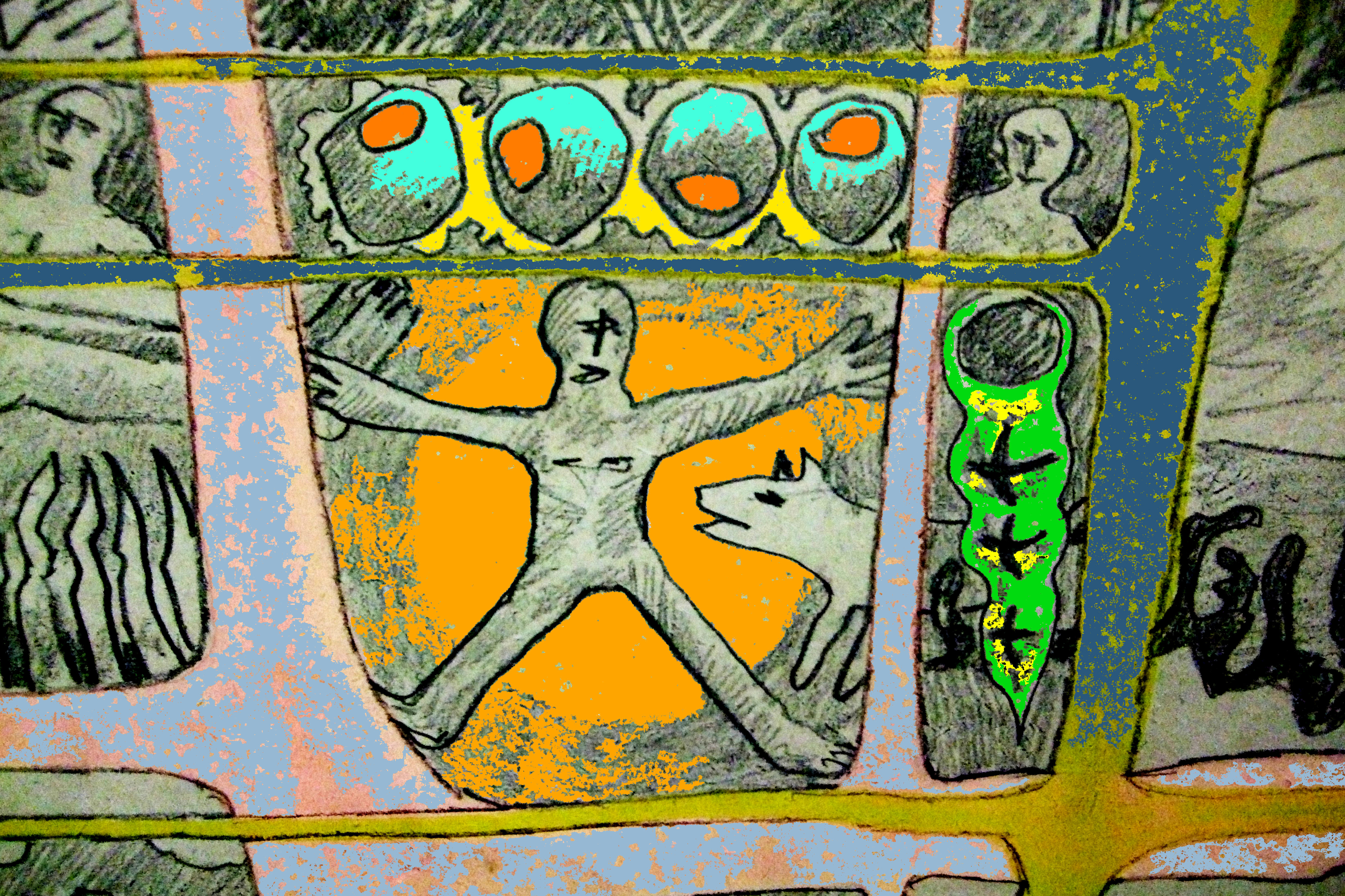 Een digitale herbewerking van een tekening, gedrukt op 310 grams geschept Hahnemühle etchingpaper