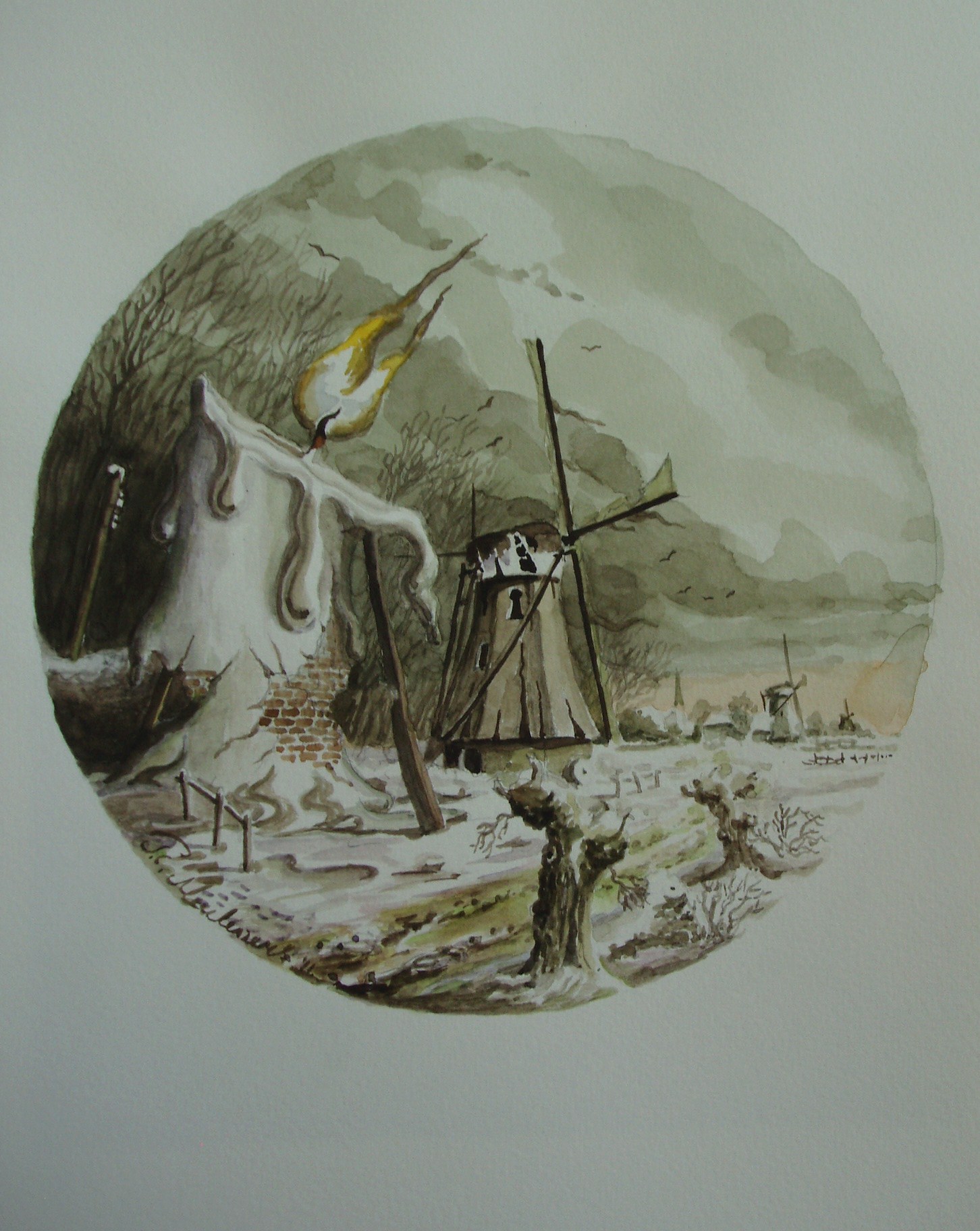 Steen Molen Kaars Aquarel Papier Realisme Fantasie Romantiek