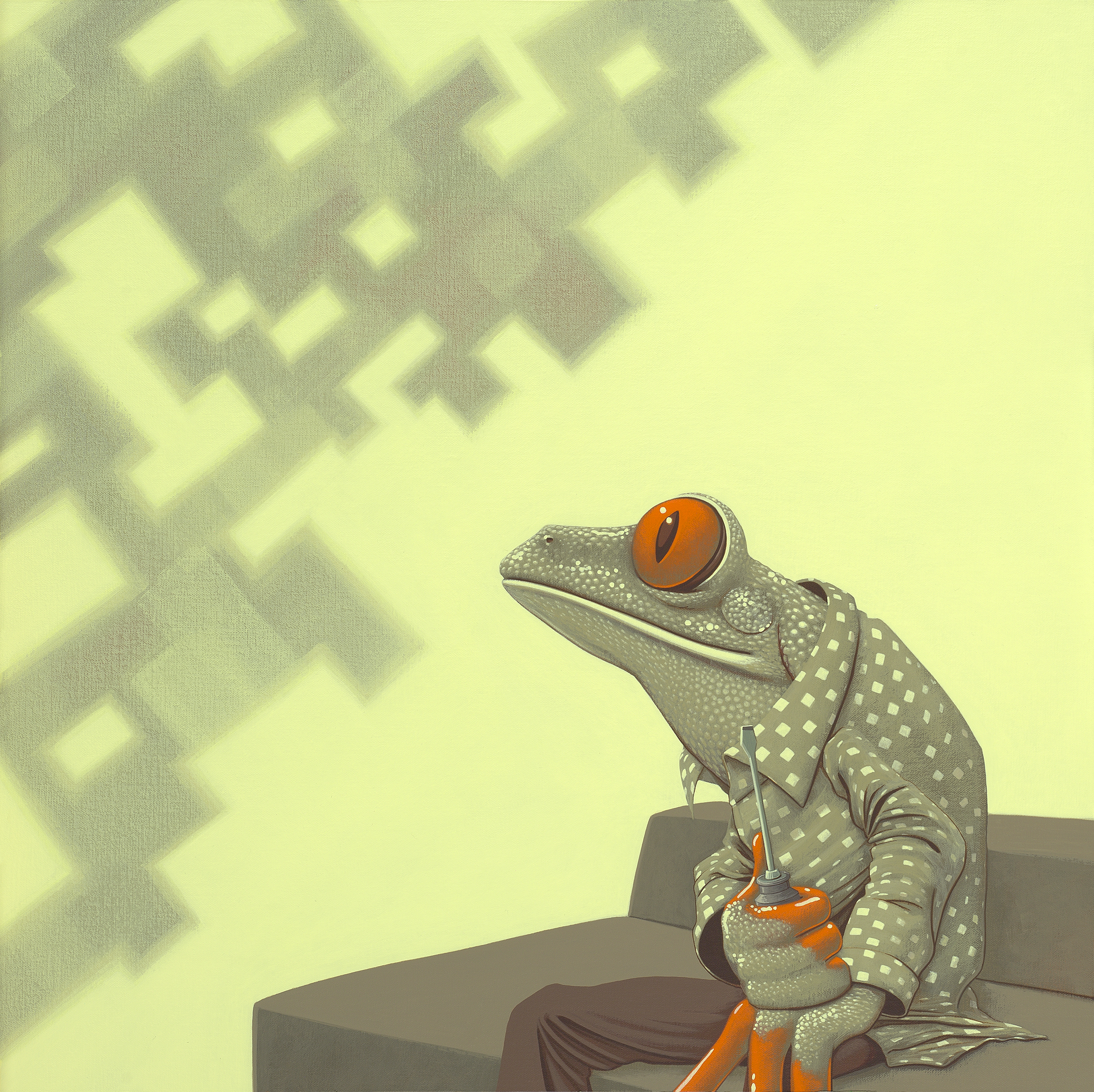 Schilderij Figuratief Grijs Oranje Geel Figuratie Bruin Dieren Dier Realistisch Surrealistisch Kikker Kunst Schilderijen Surrealisme Realisme Illustratie Kunstenaar Kunstwerk Realistische Groningen Beesten Beest Wachten Schilder