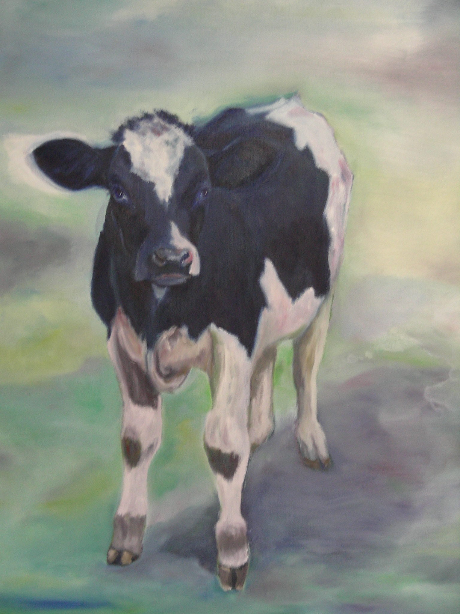 Dier Koe Olieverf Boerderij Kalf Zwart-wit