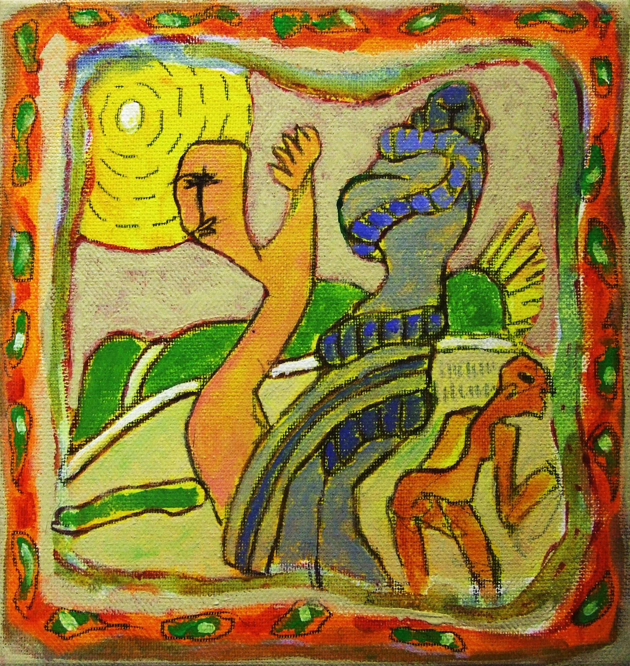 Kleine schilderijtjes (20x20cm) voor een kleine prijs. Unica, acryl op doek. Nu €150,-- inclusief baklijst en verzendkosten.