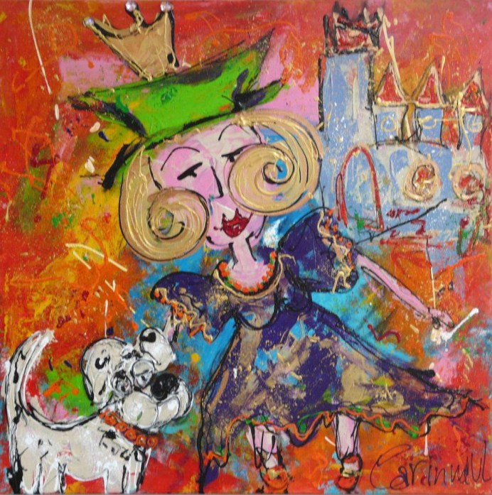 Ik schilder modern abstracte kunst . kunst waar je vrolijk van wordt Ik werk met heel veel acrylverf op doek Het werk is erg kleurrijk. Ik gebruik zoveel acrylverf dat er een 3 d effect ontstaat. Gebruik van warme felle kleuren. Ik lak mijn schilderijen met glans af .thema;s zijn dieren bloemen eten mensen. Humor in mijn werk vind ik erg belangrijk