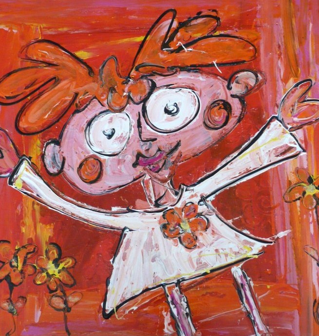 Vrolijk humoristisch schilderij Kleurrijk veel verfgebruik