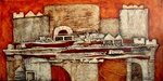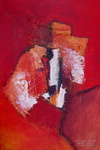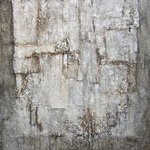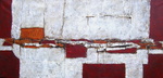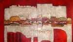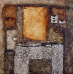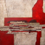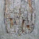 Materieschilderij in acryl op linnen. Voor het reliëf zijn materialen gebruikt zoals: stof, papier, karton, zand enz.