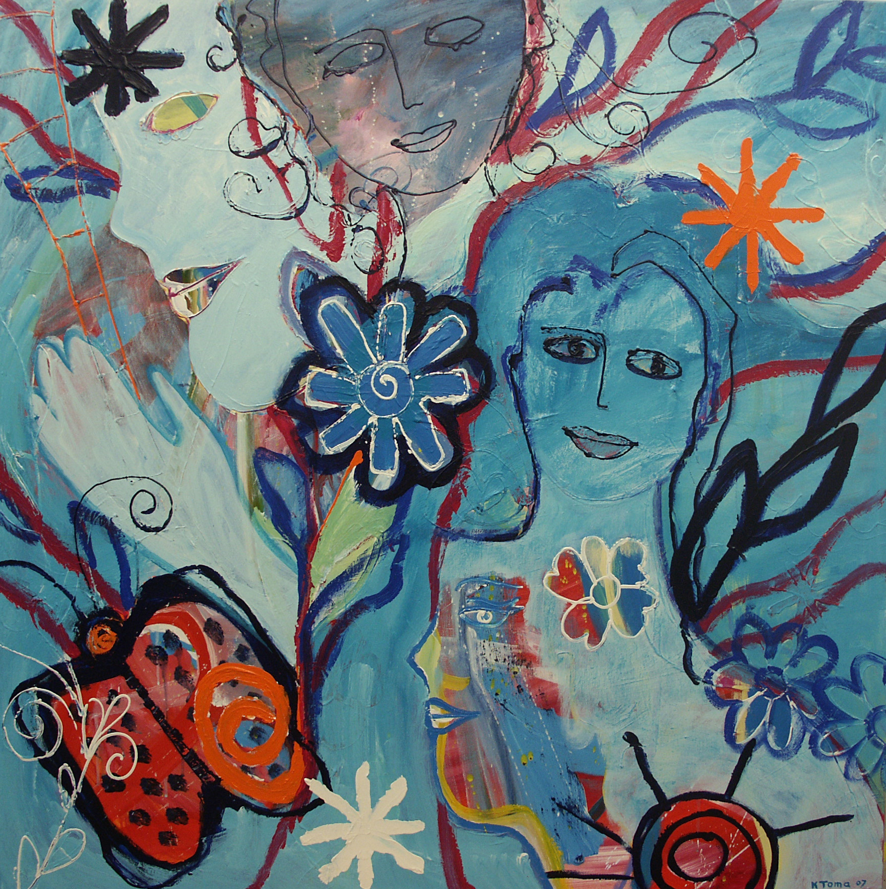 Blauw Bloemen Blue Gezichten Vlinders Flowers Sterren Stars Faces Butterflies