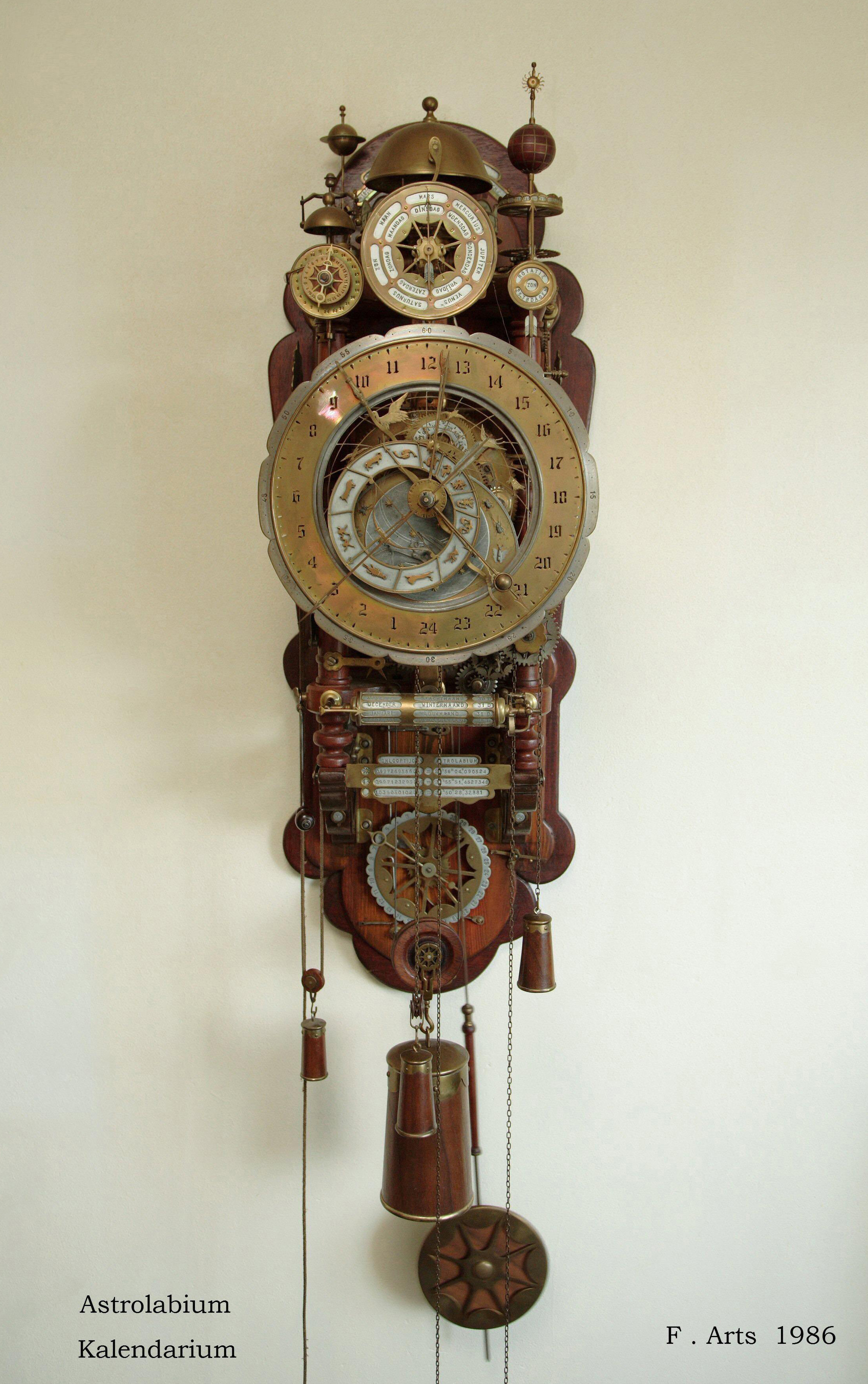 Astrolabium Kalendarium Zie bij Publicaties hoe de klok ontworpen en gemaakt is.