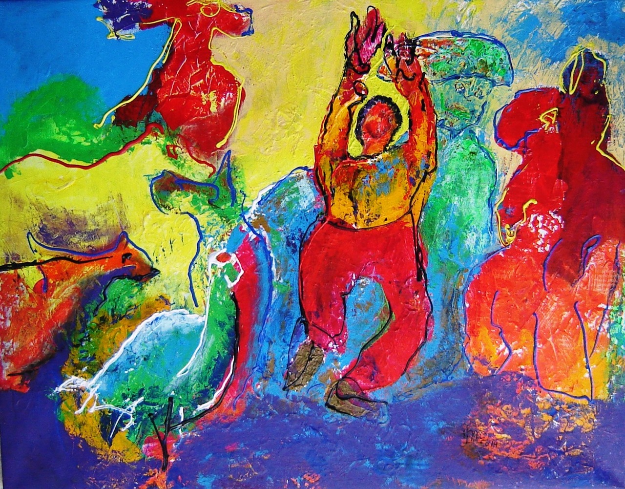 Henk Meerding (1940) volgde schildercursussen in Nederland en Frankrijk. Hij gaat veelal intuïtief te werk, en maakt gebruik van abstracte en figuratieve beeldelementen. Het werk dat zo ontstaat, kan verschillende verhalen vertellen, afhankelijk van hoe ernaar gekeken wordt.