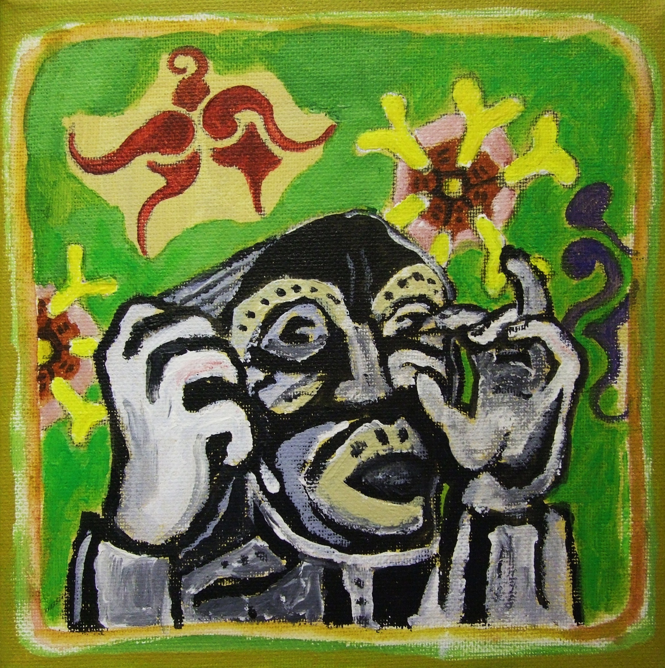 Kleine schilderijtjes (20x20cm) voor een kleine prijs. Unica, acryl op doek. Nu €150,-- inclusief baklijst en verzendkosten.