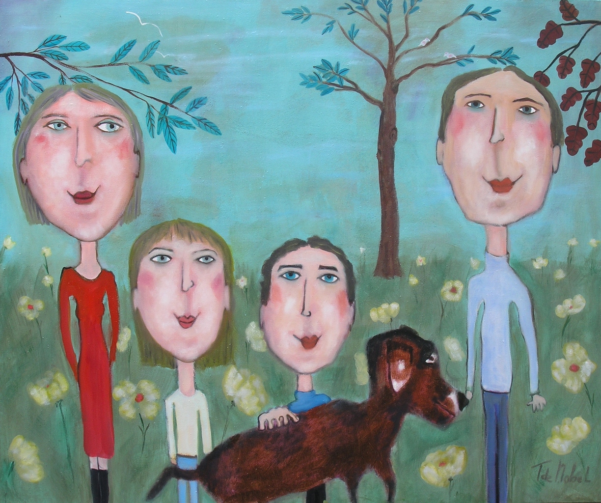 Tineke de Nobel is in de eerste plaats bekend om haar prachtig ontregelende afbeeldingen van mensen. Vliegende kasten en tafels, grappige monsters, aliens en ufo's bevolken haar schilderijen. Het blijft verbazen. Van tijd tot tijd maakt zij een serie schilderijen zonder levende wezens. Het resultaat kan dan op het eerste gezicht abstract lijken, maar het leven is nooit ver weg. Zij is geboren 1957 in Haarlem. Nu woont en werkt ze in Helmond.