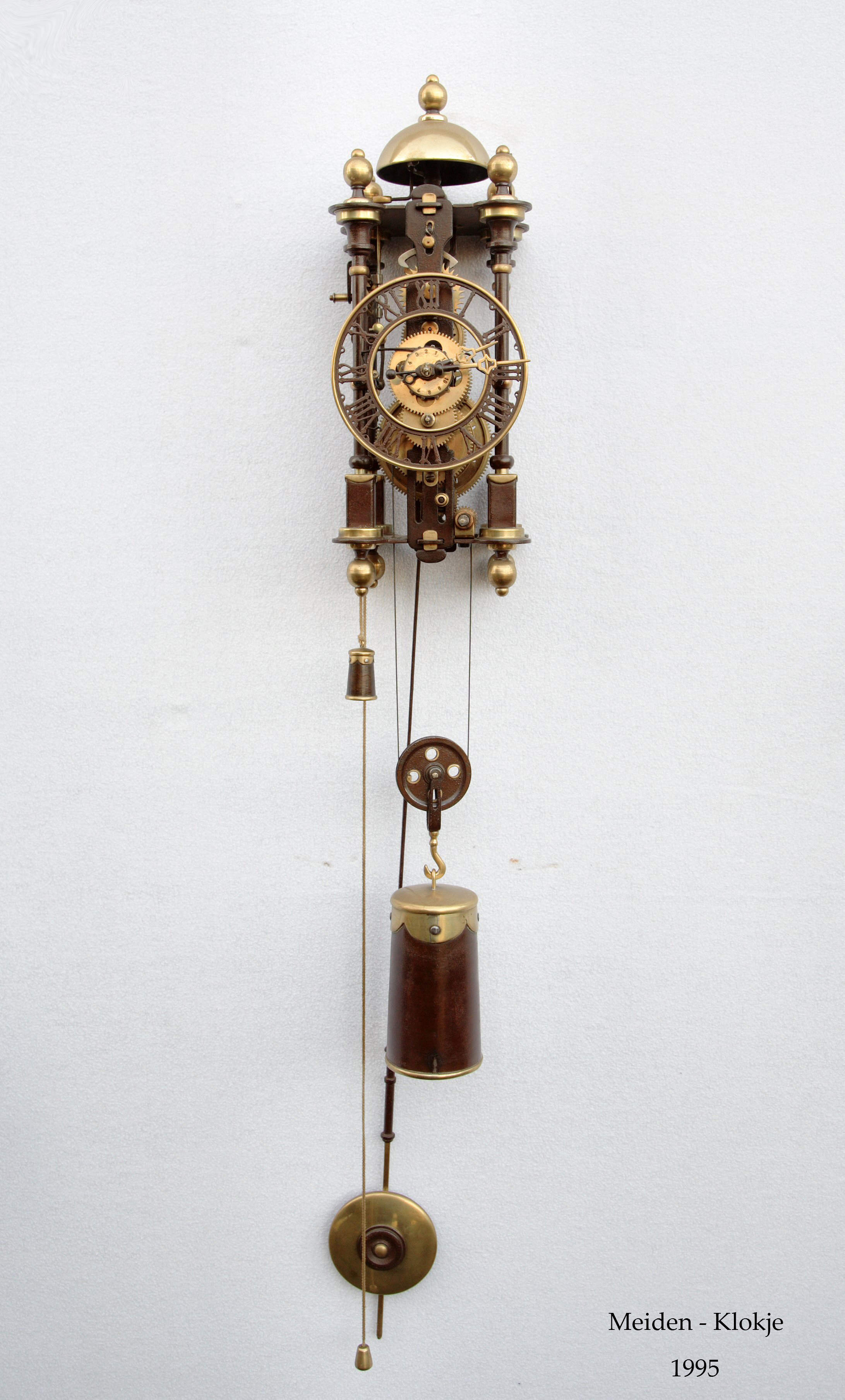 Opengewerkt uurwek met dwangslag. Gebruikte materialen zijn voornamelijk messing en ijzer.