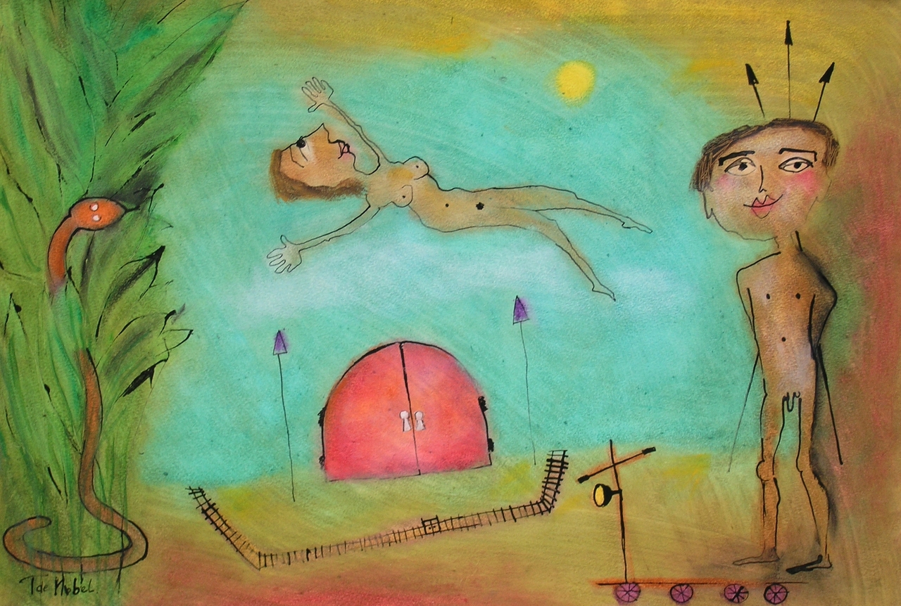 Tineke de Nobel is in de eerste plaats bekend om haar prachtig ontregelende afbeeldingen van mensen. Vliegende kasten en tafels, grappige monsters, aliens en ufo's bevolken haar schilderijen. Het blijft verbazen. Van tijd tot tijd maakt zij een serie schilderijen zonder levende wezens. Het resultaat kan dan op het eerste gezicht abstract lijken, maar het leven is nooit ver weg. Zij is geboren 1957 in Haarlem. Nu woont en werkt ze in Helmond.
