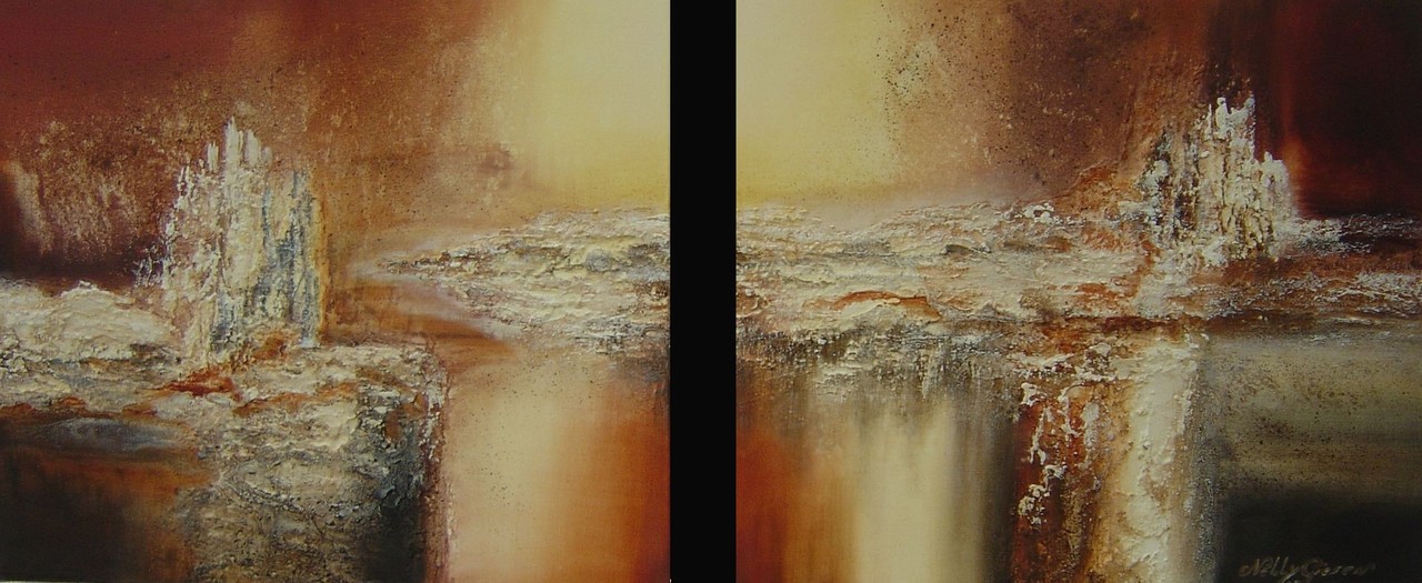 Artisan olieverf op linnen met Reliëf twee luik 50x120 3d