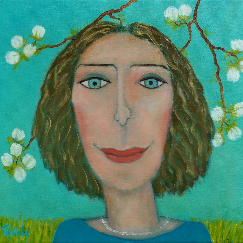 vrouw met appelbloesem