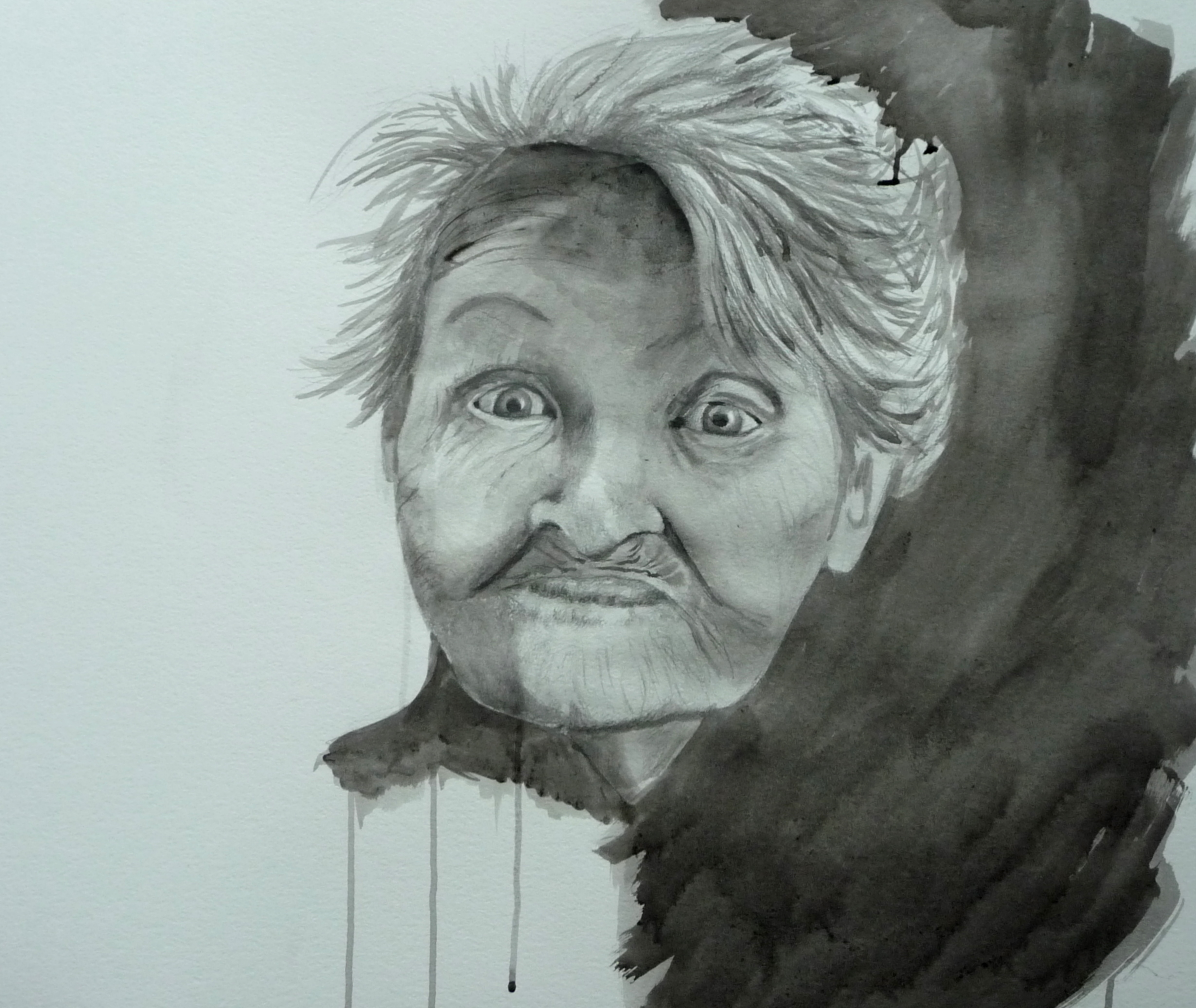 Wit Zwart Portret Inkt Gewassen Adeline