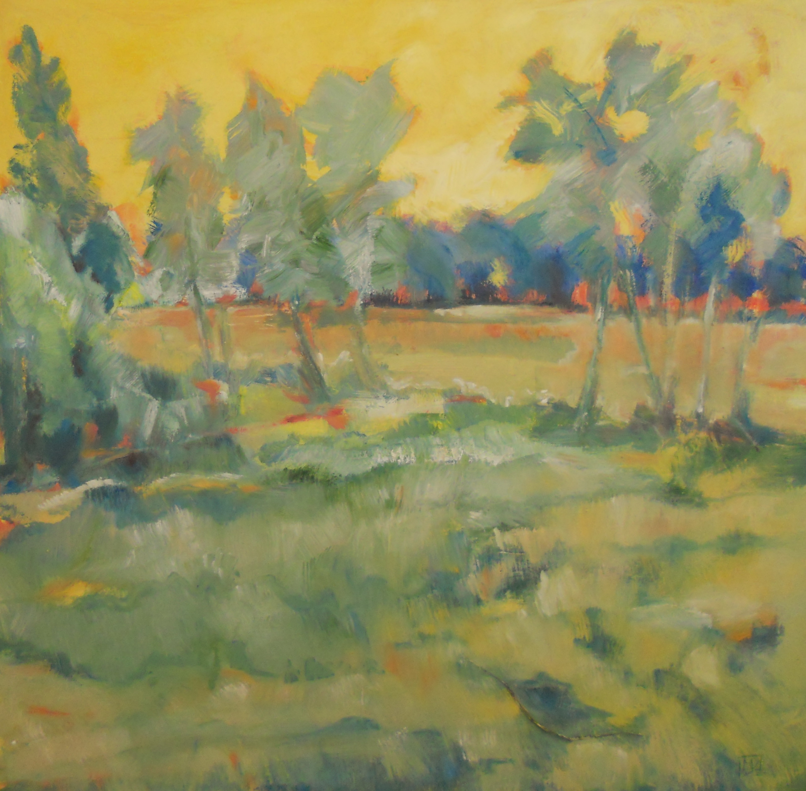 Zon Geel Landschap Olieverf Natuur Bos Zomer