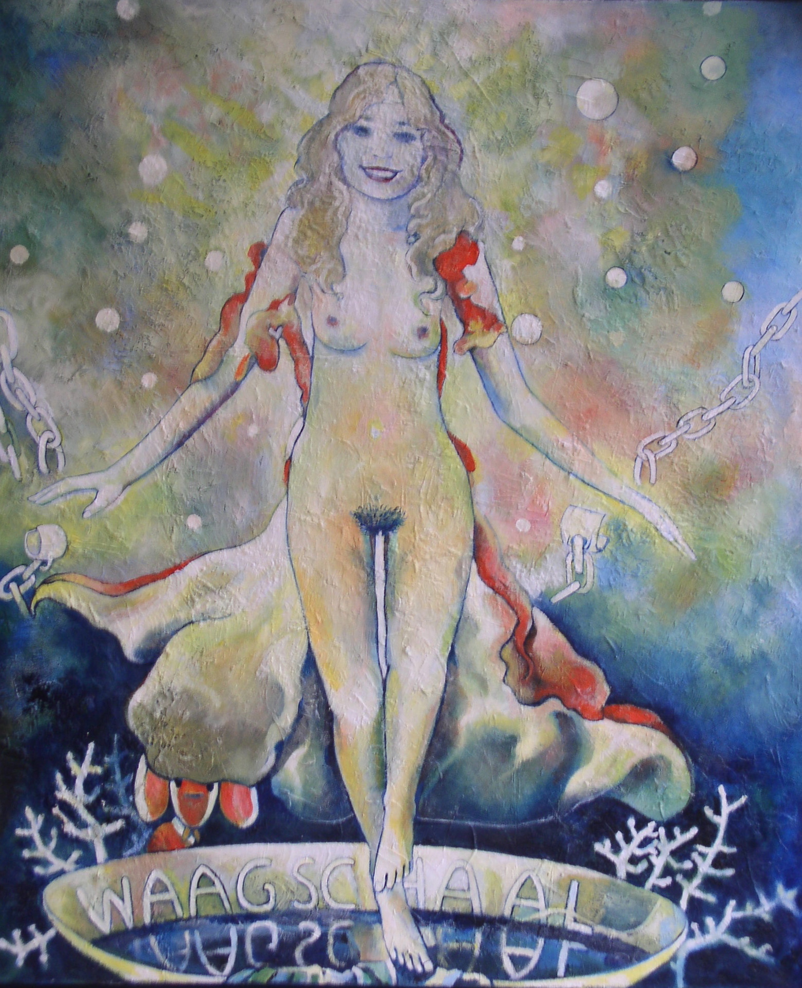 Wit Surreel Rood Geel Goud Groen Vrouw Naakt Water Schaal Plezier Ketting Lach Clownsvis