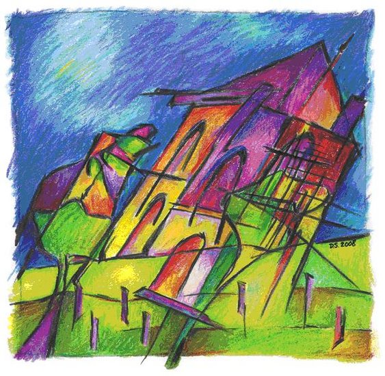 De toren op expressieve wijze neergezet in potlood op papier. In opdracht gemaakt.