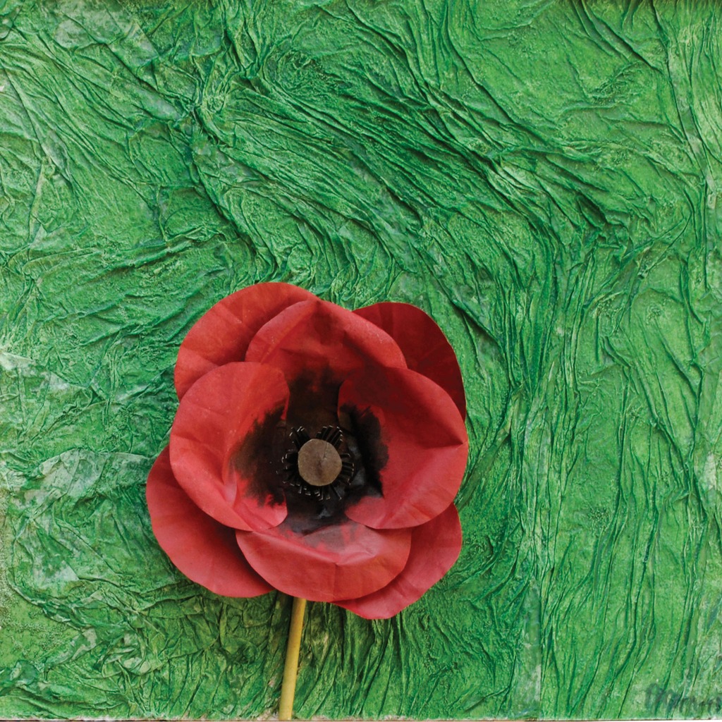 De bloem is van vloeipapier in 3D gevouwen.