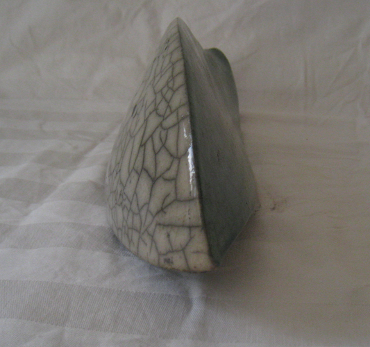 Geometrische en organische keramieke beelden meestal in rakustook technique. 2-dimensionale keramieken en lichtobjecten