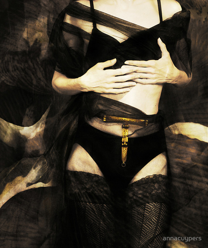 vrouwelijke figuur met riem, digitaal bewerkte foto