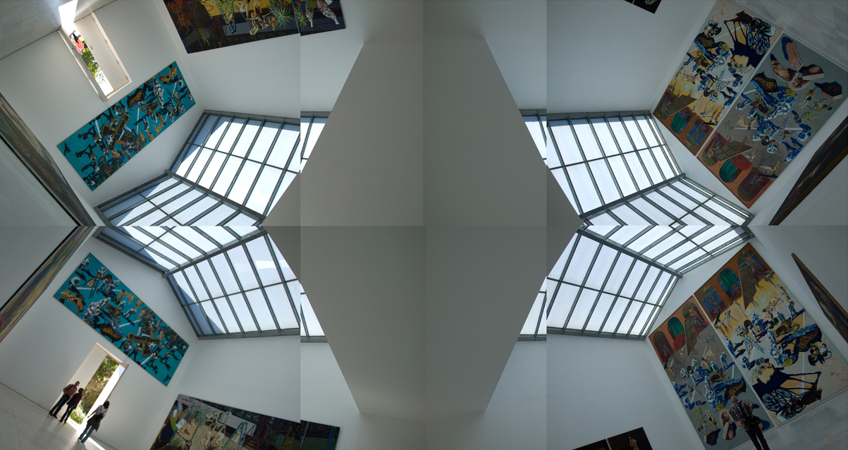 Schilderijen als wandelingen in een fictief landschap: natuurelementen die op elkaar inspelen, al dan niet met menselijke ingrepen.