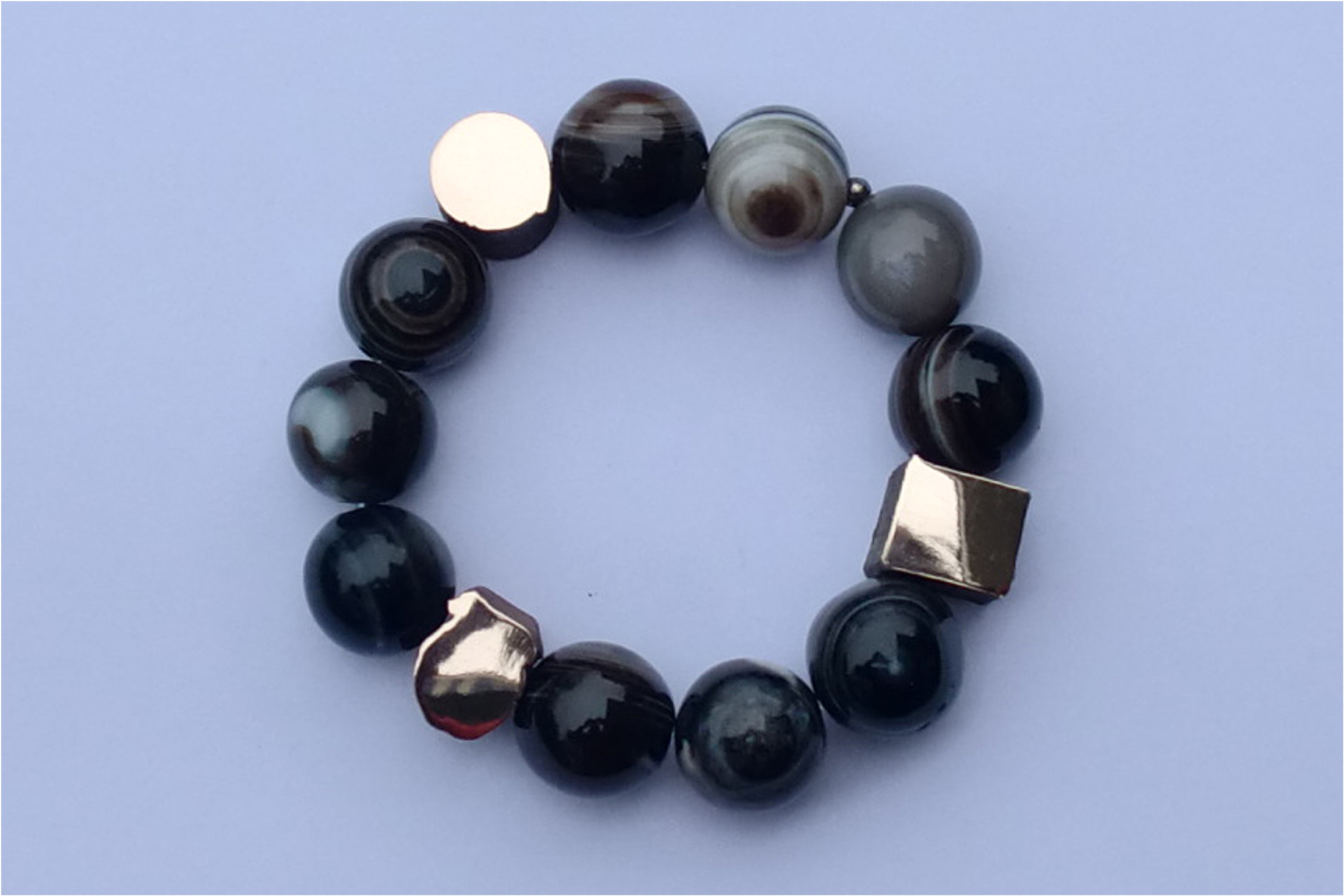 Talisman-armband. Geluks-objekt. Onyx, sardonyx met brons. Eigenschappen Onyx: helpt bij belastende en stressvolle situaties. Positieve werking op gehoor, zenuwstelsel en immuunsysteem.