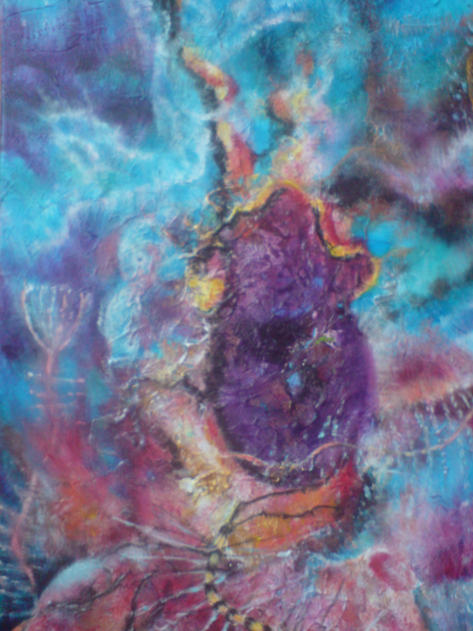 aparte schilderij van een onderwater wereld met een bijzondere kleur