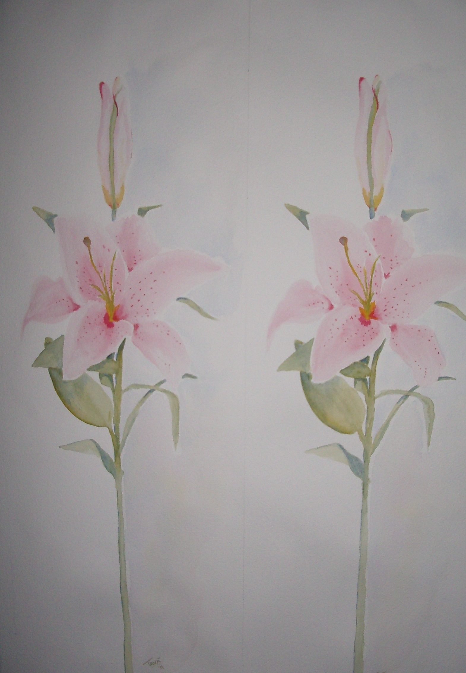 2 schilderijen met elk een lelie