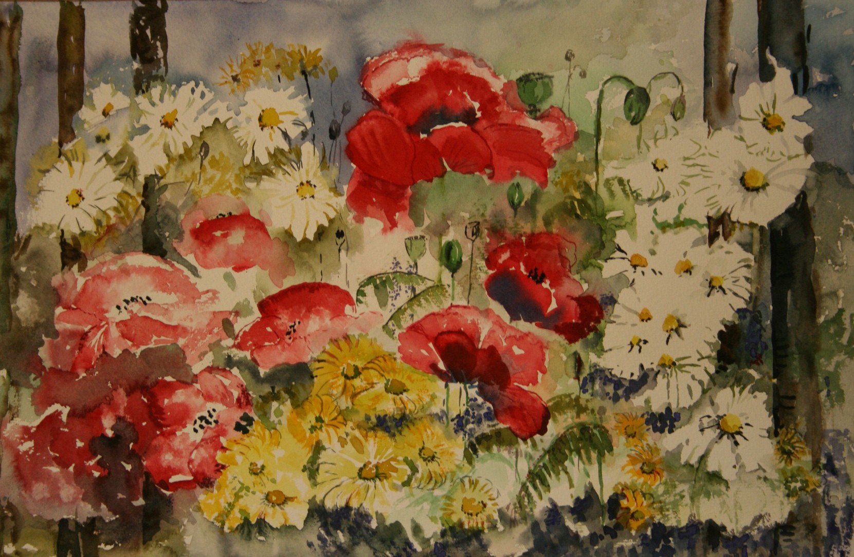 veldboeket gemengde bloemen margriet klaproos en andere