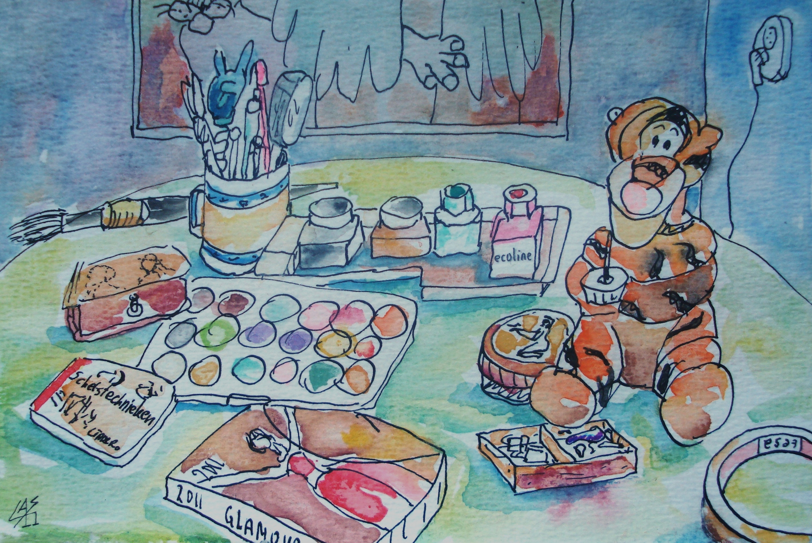 Verf Penseel Table Etc Teigetje Werktafel Tisch Stol Aquareldoos