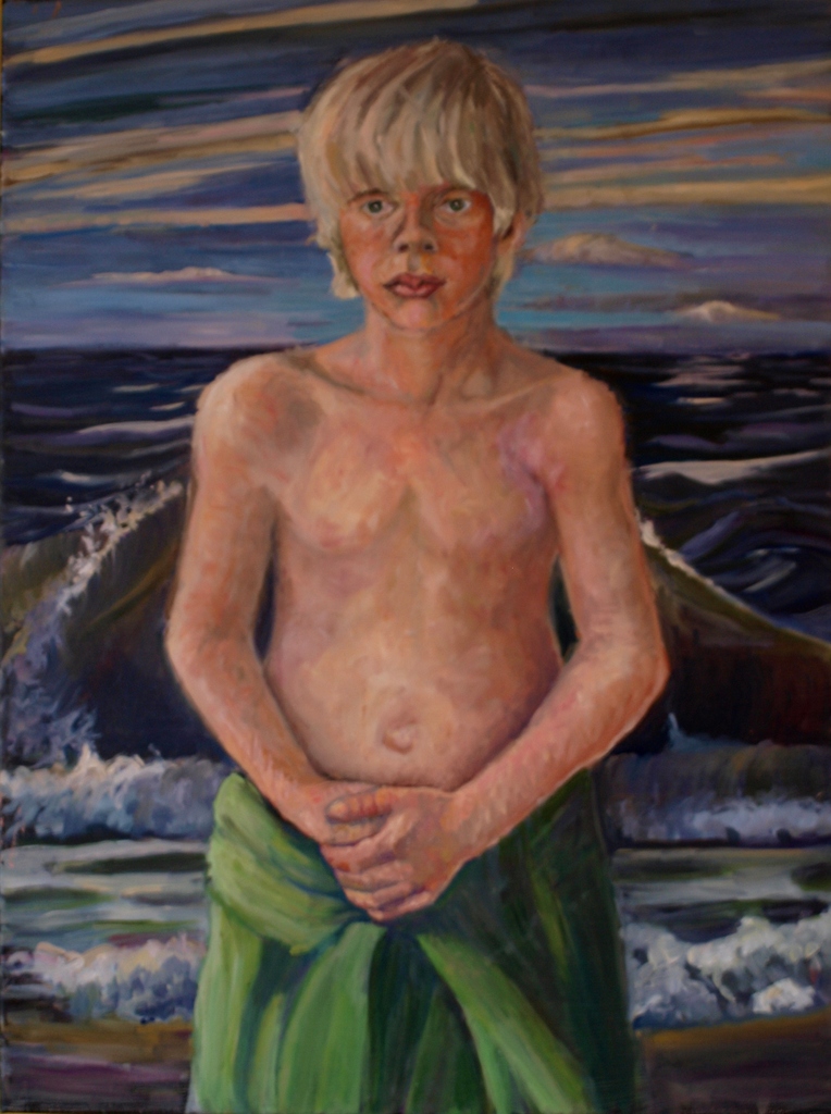 Zee Portret Olieverf Surrealistisch In Oilpaint Golf Lucht Sky Jongen Boy Kleur Handdoek Sea Denken Thinking Surrealistic Zichzelf Towl
