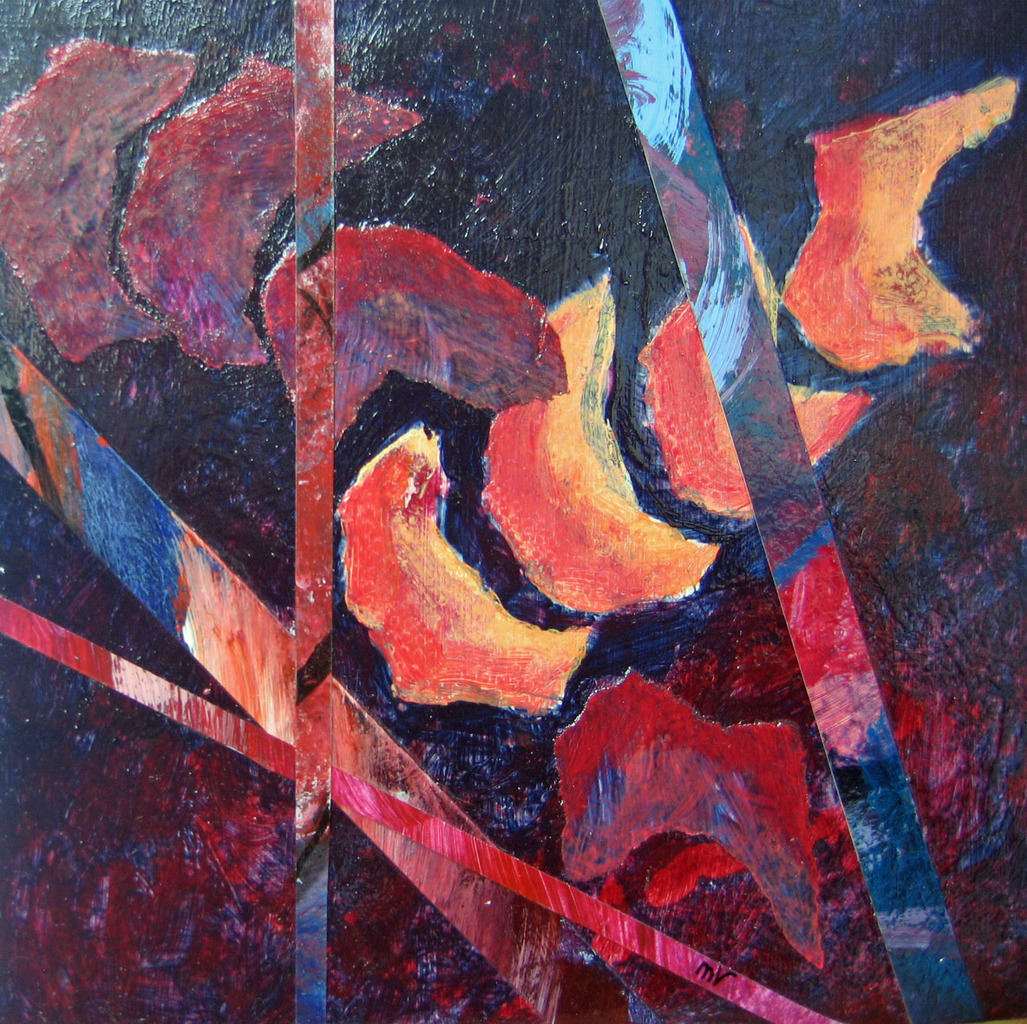 Mijn onderwerpen vind ik zowel in mijzelf als in mijn omgeving. Ik begin te werken vanuit de waarneming en laat deze dan langzamerhand steeds meer los.