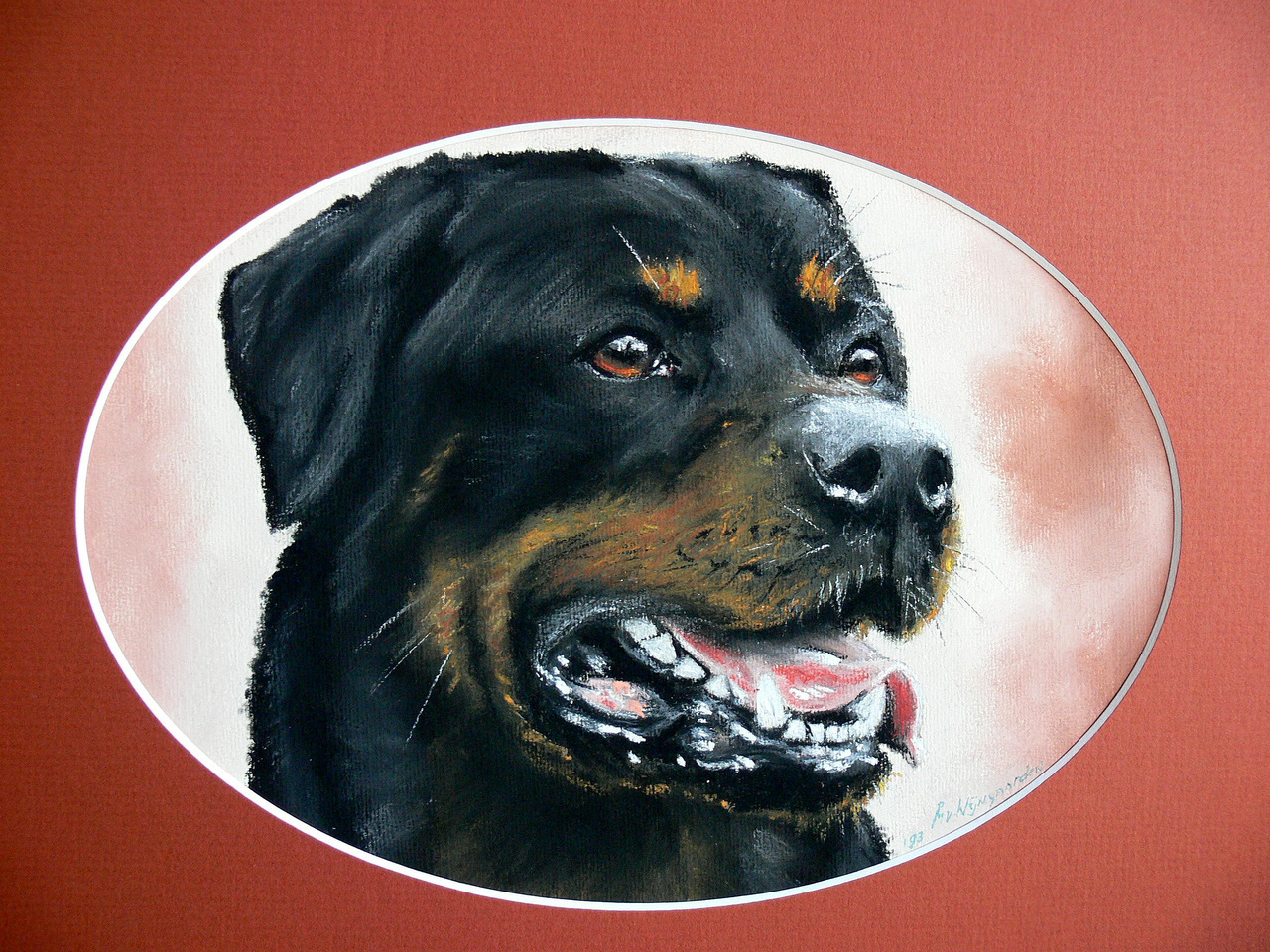 Rottweiler kop. Te koop. Incl. lncl. lijst