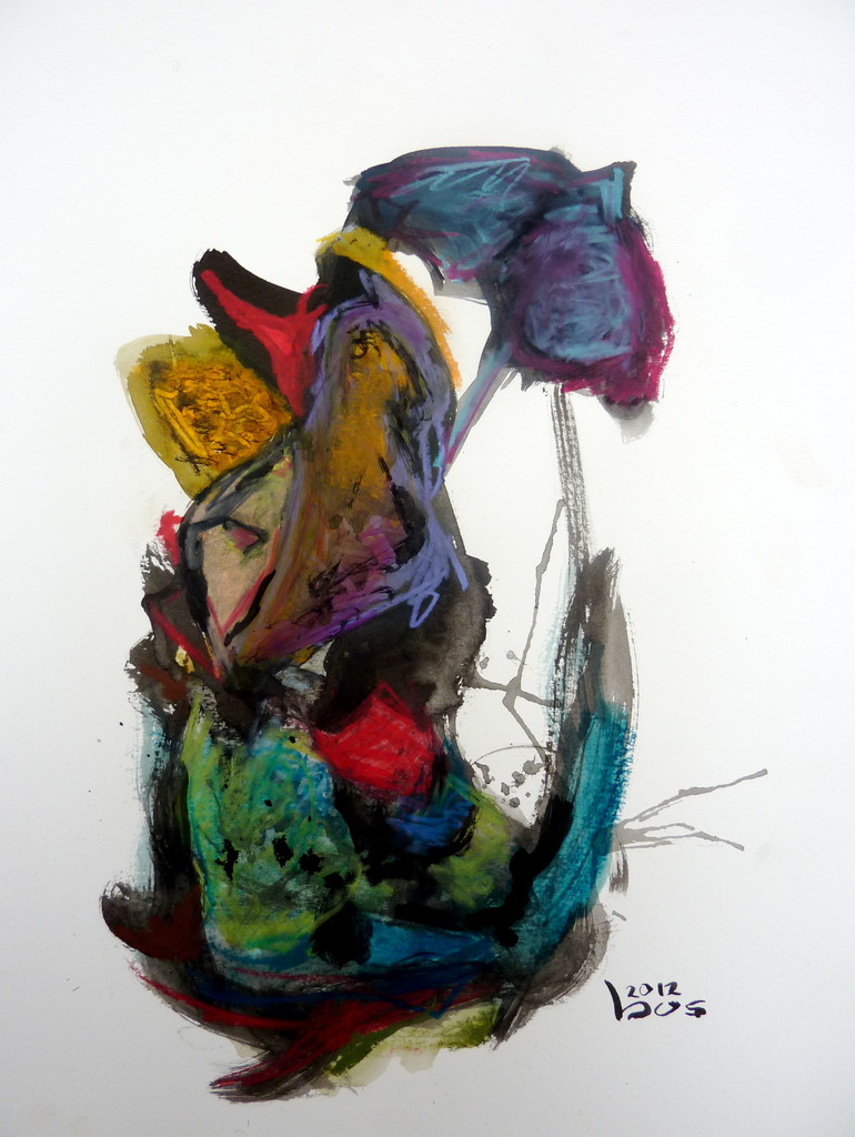 Kleurrijke tekening snel opgezet zonder vooropgezet plan, zet 'n kleur, zet er nog een, en nog een... Het creëren is begonnen, geen verstand, alleen intuïtie...