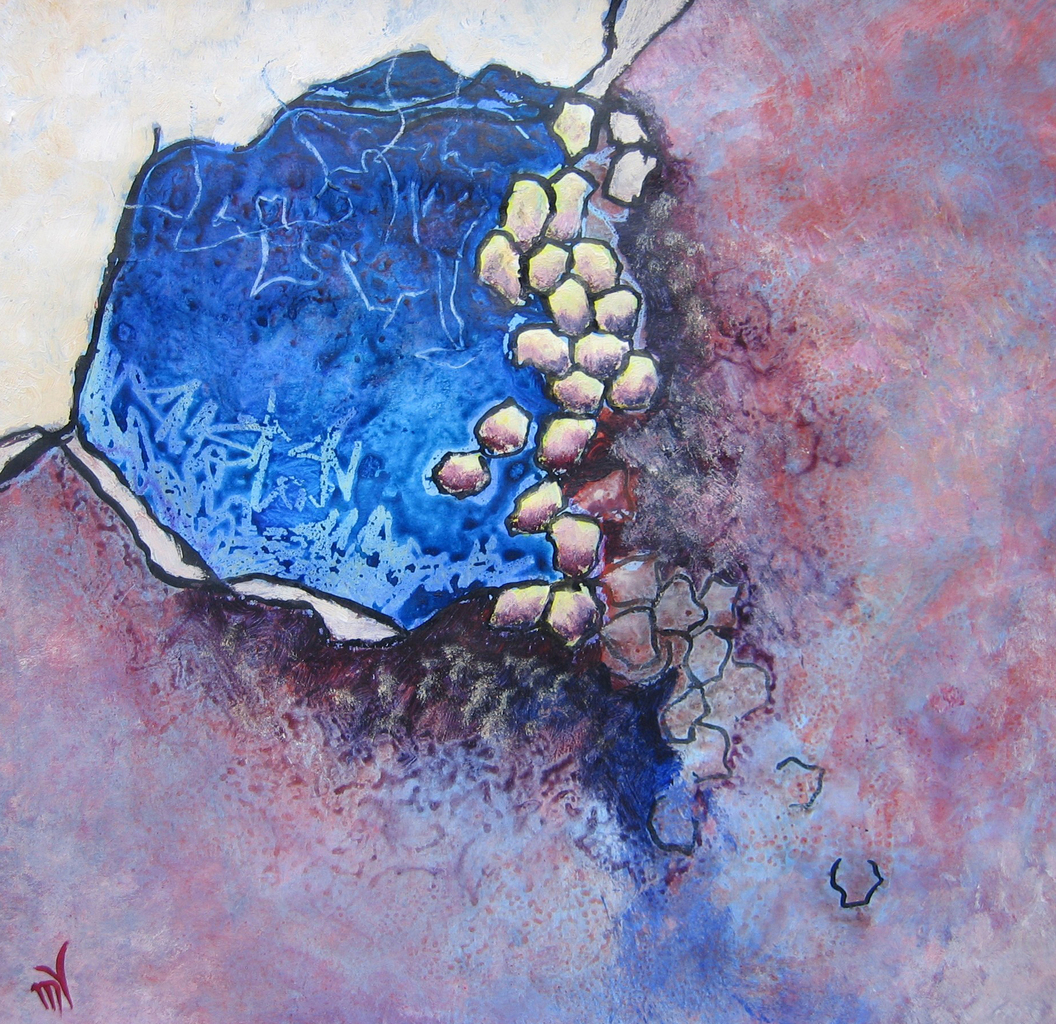 Mijn onderwerpen vind ik zowel in mijzelf als in mijn omgeving. Ik begin te werken vanuit de waarneming en laat deze dan langzamerhand steeds meer los.
