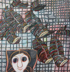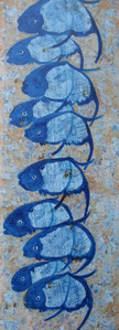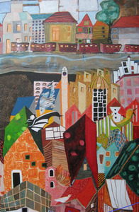 'Beweging, herhaling, verstilling', daarin zou je mijn werk kunnen vangen. Een tijdlang wordt een thema (vissen, huizen, bomen, dansende schoenen en voetafdrukken en het onderwerp: "kwetsbaar: de mens") uitgediept, weer losgelaten om vervolgens in een nieuwe verwerking tevoorschijn te komen. Altijd speelt de paradox van alleen te zijn en in communiteit. Eenheid van tegenstellingen, daar gaat het blijkbaar om. Mijn werk toont een vloeiende synthese tussen figuratie en abstractie. Ik bevind me meestal in het grensgebied van beide. Vandaar mijn beschrijving: VRIJE FIGURATIE.