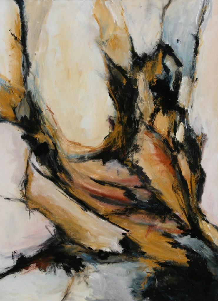 Naar aanleiding van een eerder gemaakt schilderij, geïnspireerd op een oude boomstronk ergens in De Veluwe. Geschilderd op een 3D katoenen doek.